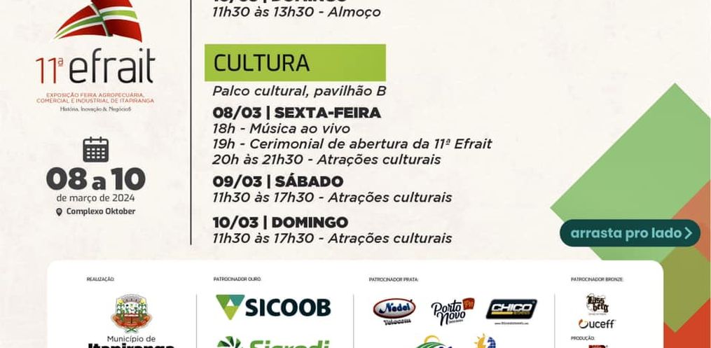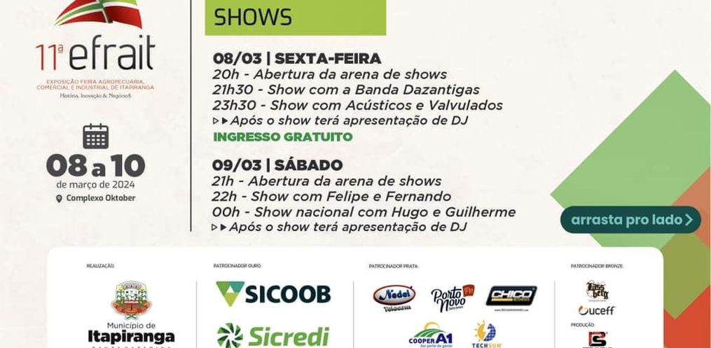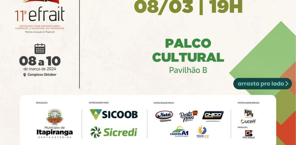 2. Itapiranga inicia nesta semana projeção de shows para 11ª Efrait
