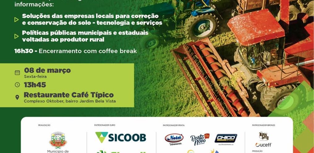 A partir das 16 horas, no Setor Agropecuário, ocorre apresentação de políticas públicas da Secretaria de Agricultura, abordando ações bem sucedidas no setor. Ainda terá espaço para apresentação de soluções de empresa locais para correção e conservação do solo.