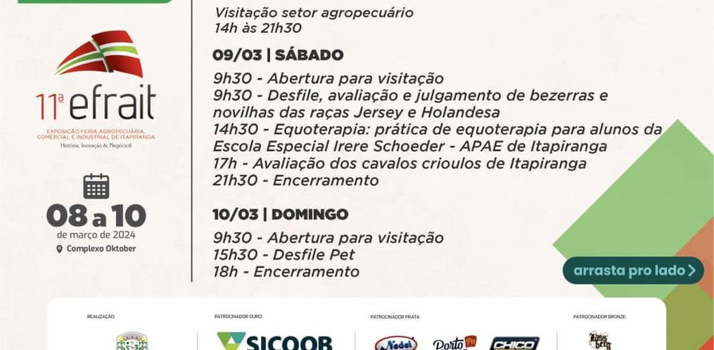3. Itapiranga define comercialização de estandes para a Efrait