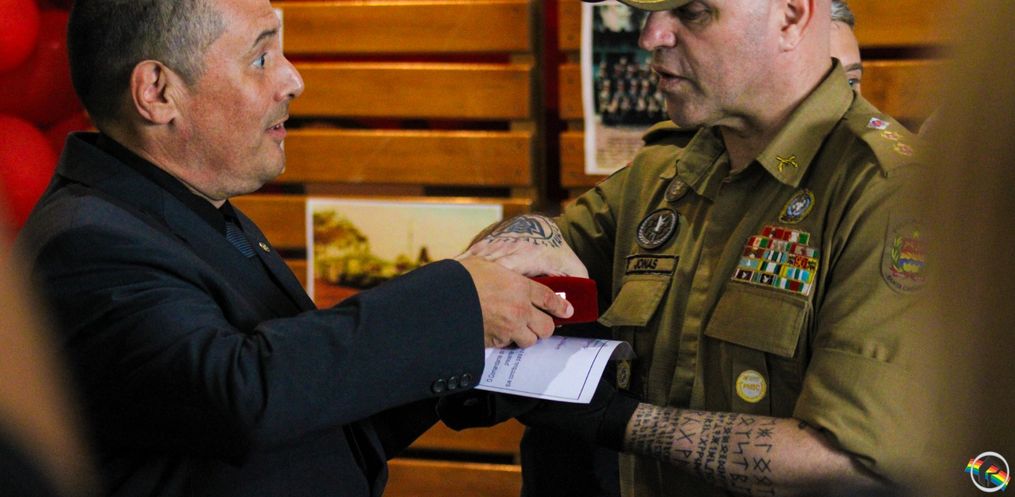 Durante a solenidade também foi realizada a entrega da medalha comemorativa do 9º Comando Regional de Polícia Militar de Fronteira aos Coronéis Veteranos da Polícia Militar, Luiz Guerini, Alexandre dos Santos Cabral e Marcelo de Wallau da Silva.