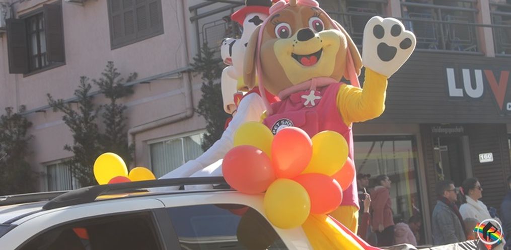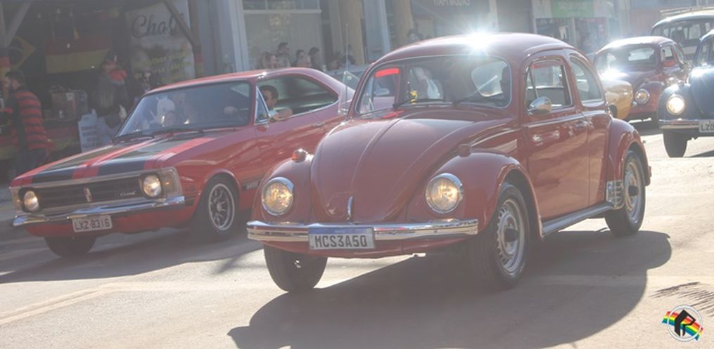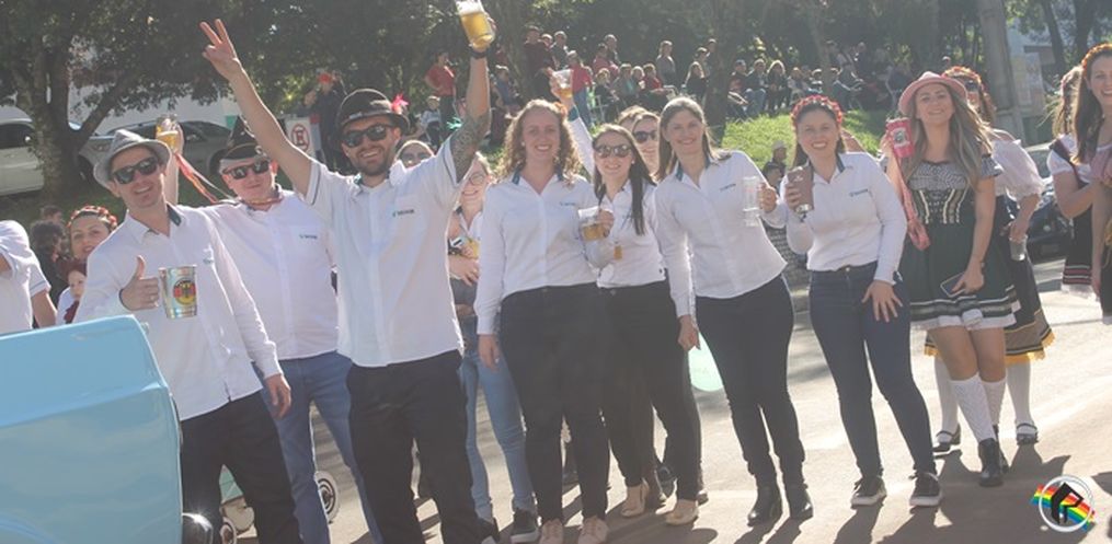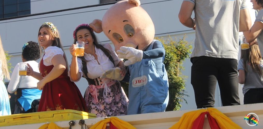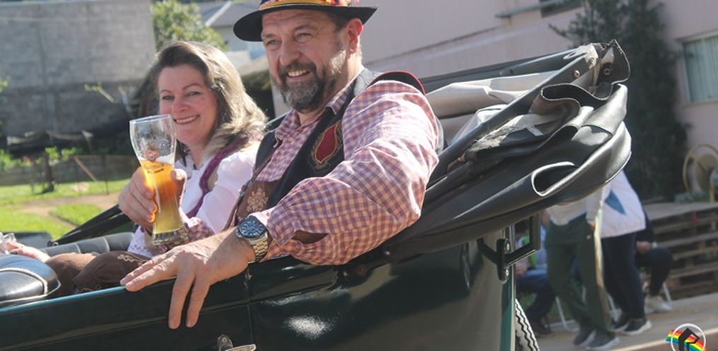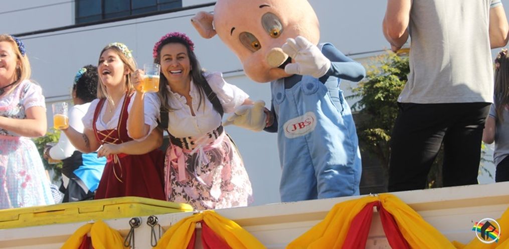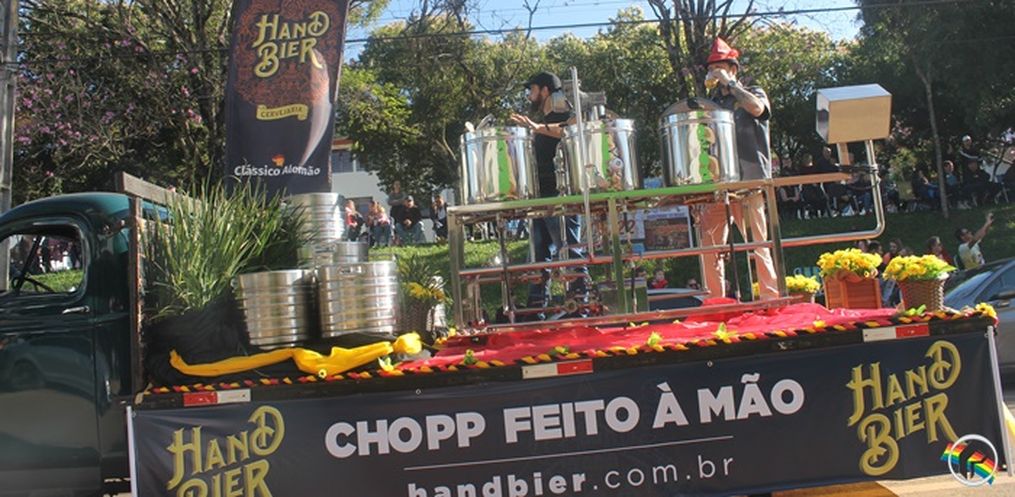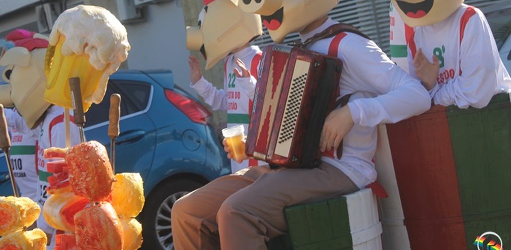 encanto, com carros alegóricos, chopp e música.