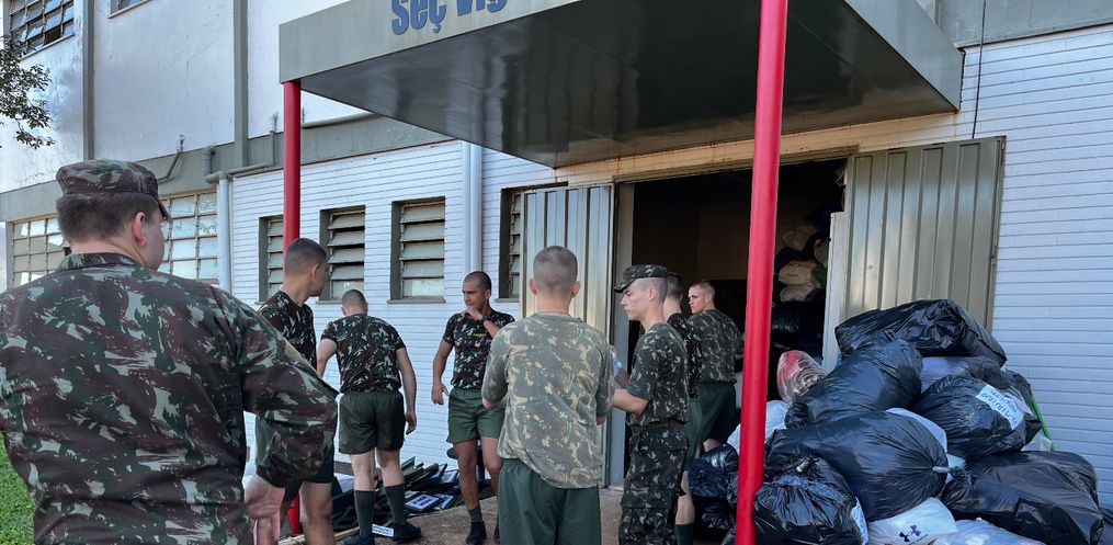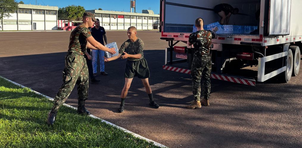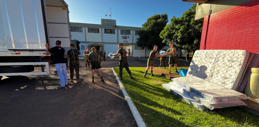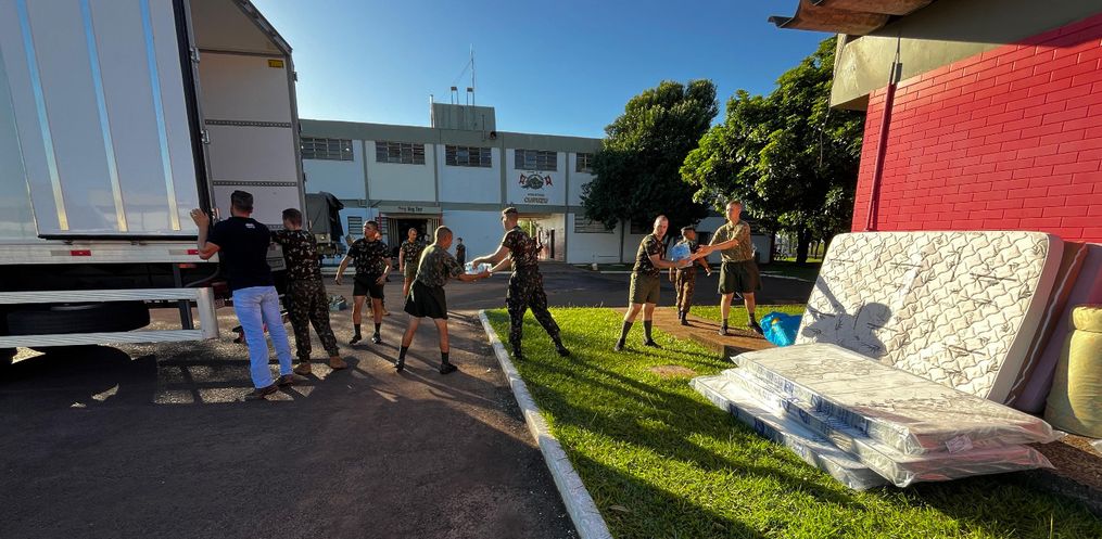 Ilaine também destacou que as doações estão sendo recebidas continuamente no 14º RCMec, no Latitudes Eventos, e em outros pontos de coleta divulgados anteriormente, enfatizando o compromisso contínuo com o auxílio às vítimas das enchentes.