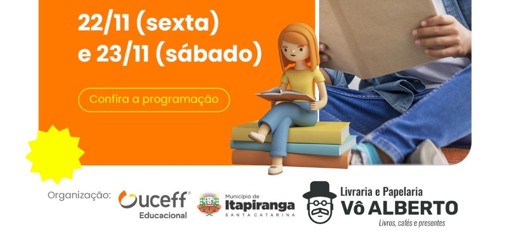 Evento terá parceria da Prefeitura, UCEFF e livraria Vô Alberto. Programação será nos dias 22 e 23 de novembro, no Ginásio Municipal de Itapiranga. Serão desenvolvidas atividades especiais, com autores convidados e surpresas aos visitantes. Conforme a Secretária da Educação, Elaine Kummer Mueller, a 17ª Feira Do Livro terá como tema "Leitura: uma janela para o mundo".