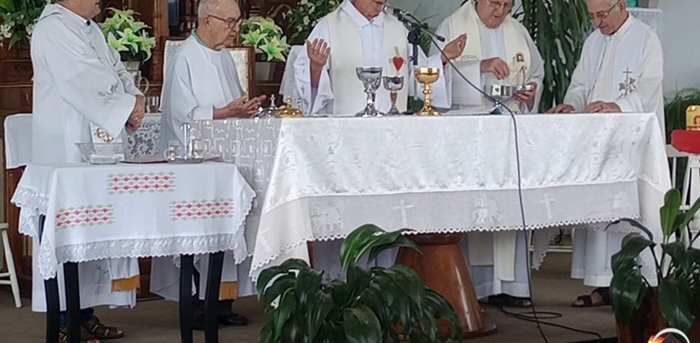 A celebração, que ocorreu às 9h30min, teve transmissão da Rádio Itapiranga, e foi celebrada por cinco Padres: Hugo Mentges, da Paróquia de São João do Oeste, Ivo Kuhn da Paróquia de Itapiranga, Ancelmo Spies, atuando na Paróquia de Itá e que a partir de 2024 irá atuar em Anchieta, Renato Schaefer, natural de Ervalzinho e que atua na Paróquia de Cuiabá e Ivo Mueller, que atua em Sinop-Mato Grosso.
