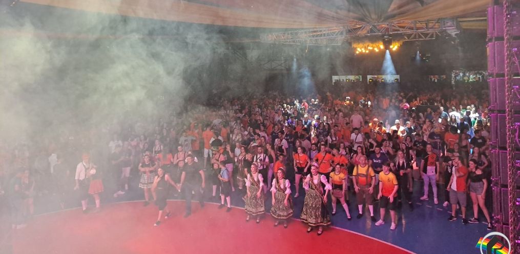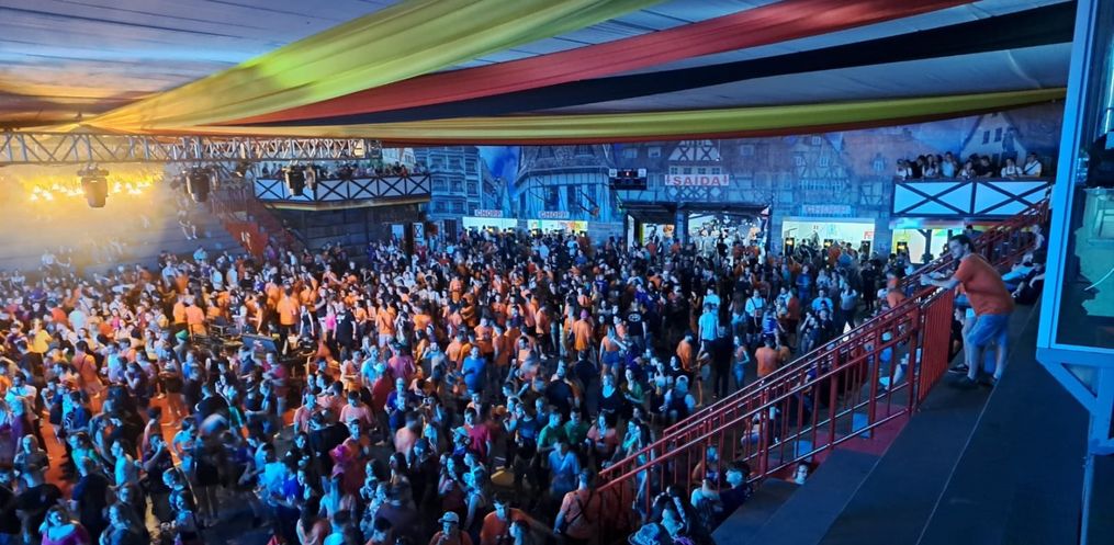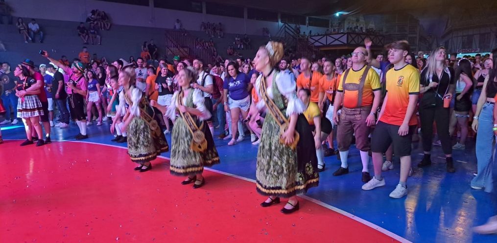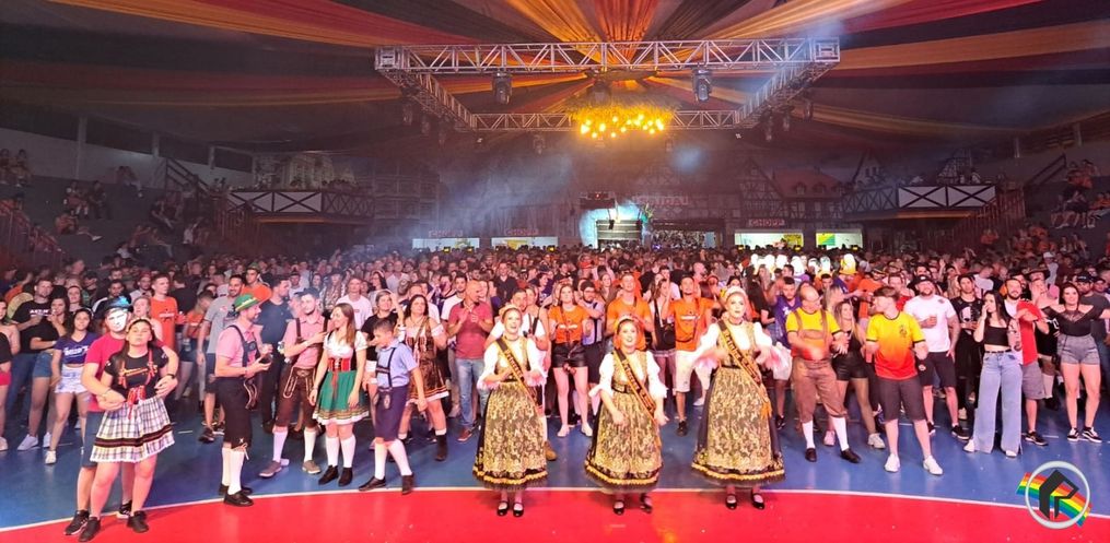 Pessoas de diversas cidades participaram das festividades da 44ª Oktoberfest de Itapiranga na noite deste sábado, 14.