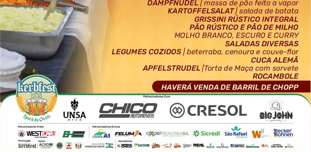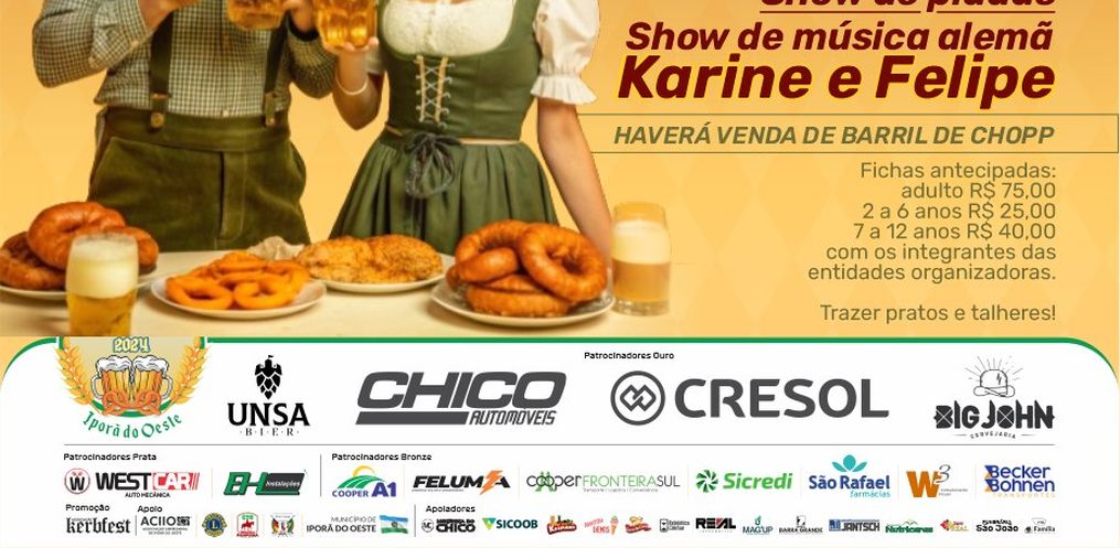 O evento cultural que terá início nesta quinta feira, 12, em Iporã do Oeste, terá entre diversas atrações, a realização da quarta edição do Jantar Alemão.