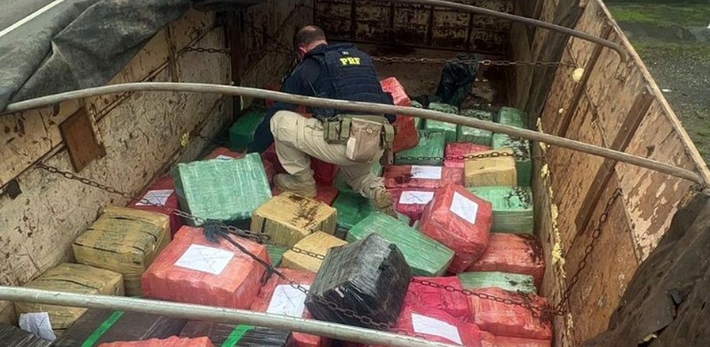 As duas forças de segurança trocaram informações e localizaram o veículo suspeito, uma carreta Scania placas de Campo Grande/MS, transitando sentido sul da BR-101. A abordagem foi feita na Unidade Operacional da PRF em Barra Velha. Os fardos da droga ocupavam boa parte do semirreboque, escondidos por uma lona preta.