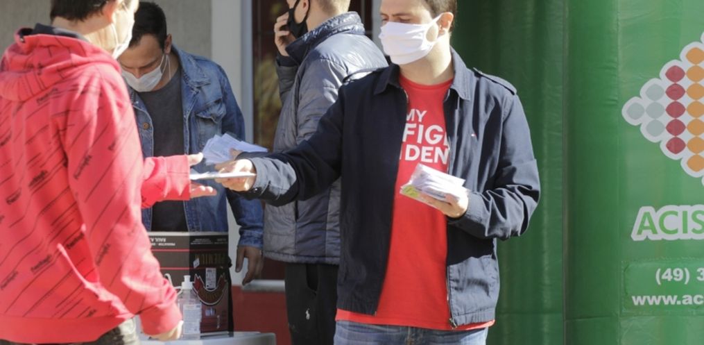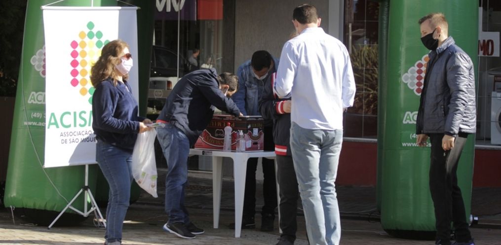 Integrantes do Conselho Diretor da Associação Empresarial de São Miguel do Oeste realizaram, na manhã deste sábado, 17, a entrega de mais de 800 máscaras para a população. A atividade desenvolvida pelo projeto São Miguel em Ação, aconteceu no Calçadão da Almirante Tamandaré.