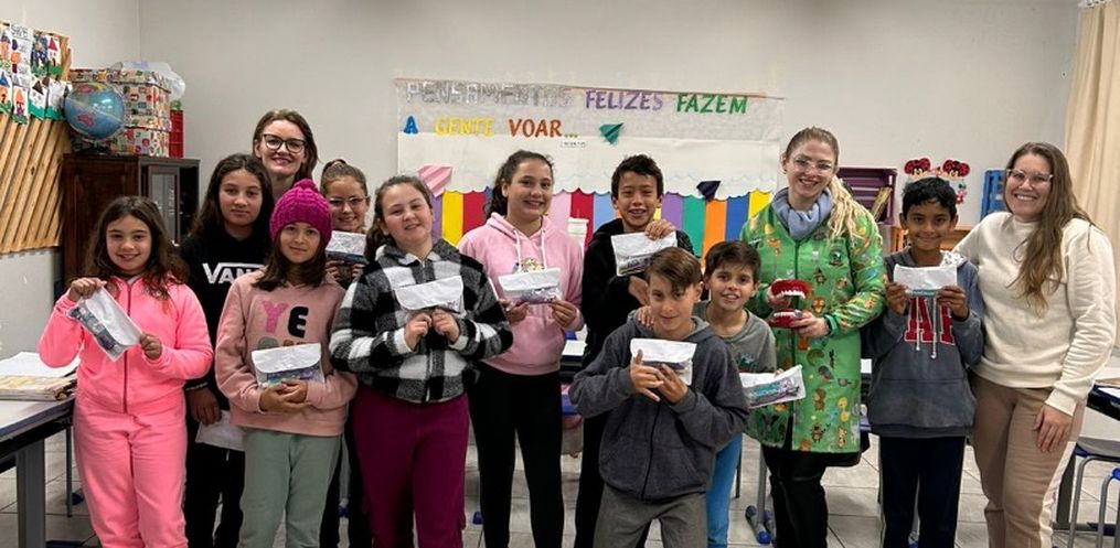 A atividade contou com momentos lúdicos e educativos, que envolveram as crianças de forma divertida, ensinando a importância da escovação correta dos dentes e dos cuidados diários com a saúde bucal. Ao final, foi realizada a entrega de kits de escovação para todos os escolares, incentivando a prática em casa junto de seus familiares.