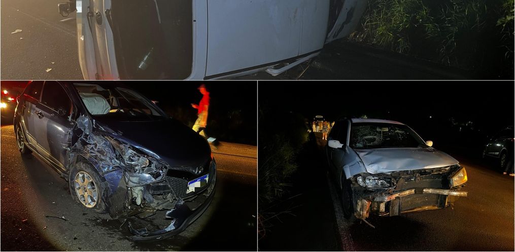 De acordo com o que foi apurado no local, a colisão envolveu um HB20, um Megane e um Gol. Duas vítimas foram socorridas pelo Corpo de Bombeiros e encaminhadas ao Hospital Regional. Não foram repassadas informações sobre a gravidade dos ferimentos.
