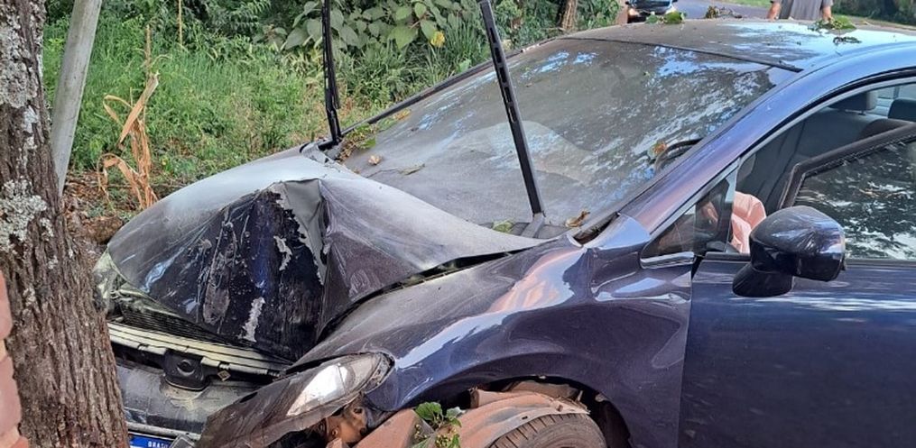 O acidente envolveu três veículos, sendo um Siena com placas de Itapiranga, uma Parati de Barra do Guarita - RS e um Civic, placas Mercosul.
