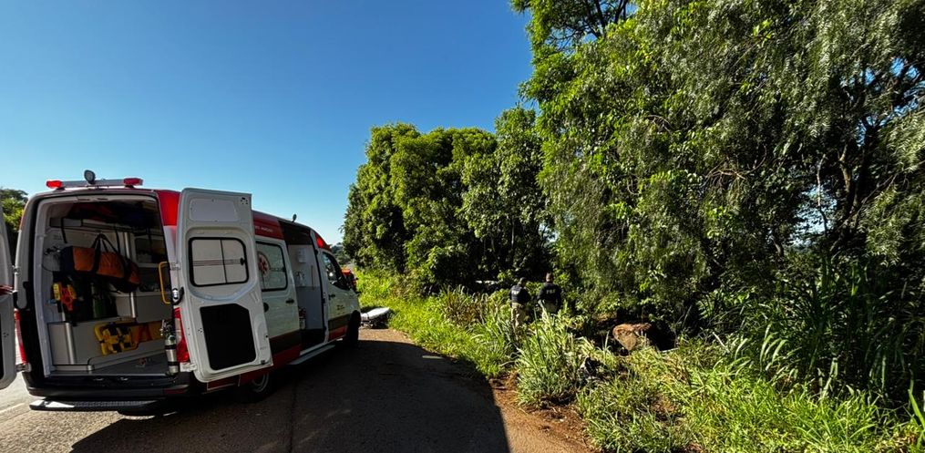 Um acidente registrado na manhã desta terça-feira, 25, por volta das 8h, deixou duas pessoas feridas na Linha Bela Vista das Flores, interior de São Miguel do Oeste.