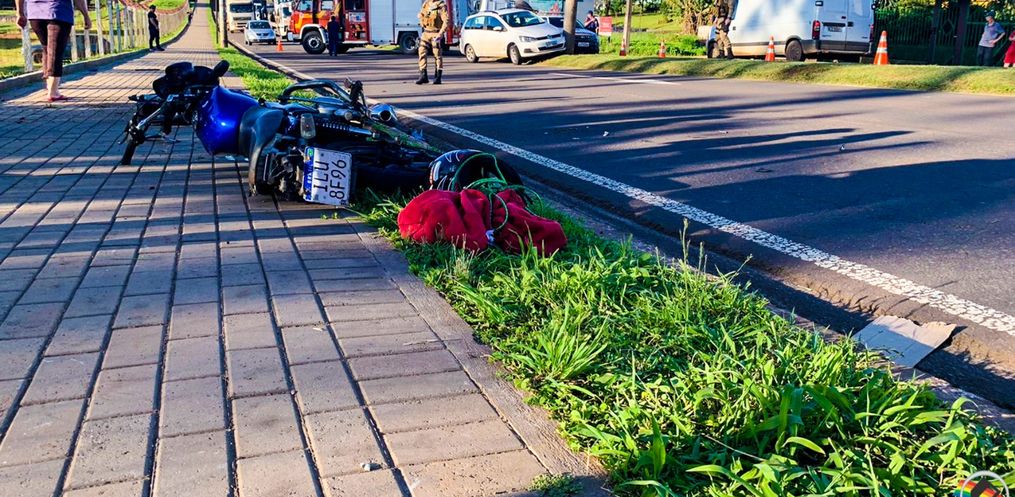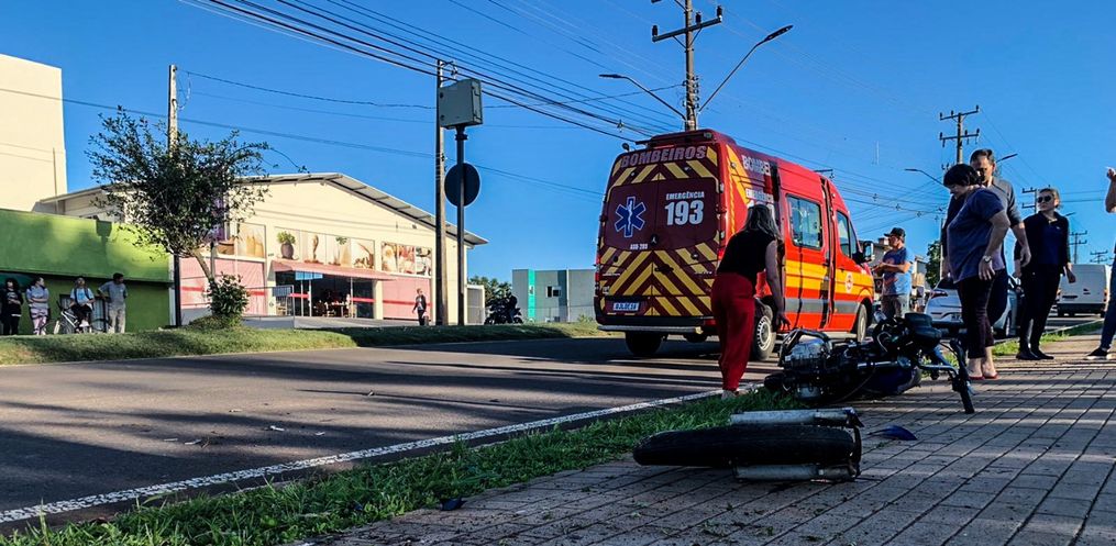 Com o impacto, o motociclista de 20 anos caiu e sofreu graves ferimentos. O Corpo de Bombeiros foi chamado e conduziu o jovem até o Hospital Regional.