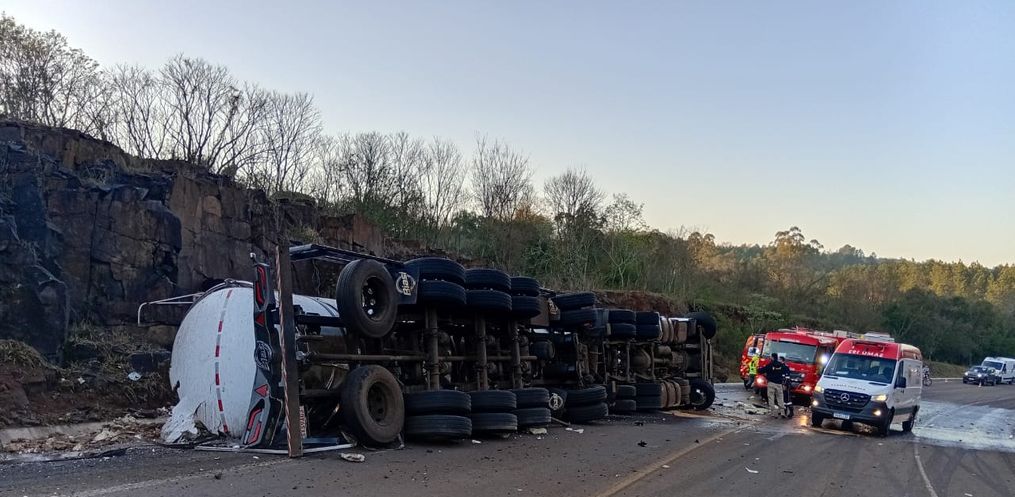 A Polícia Militar e PRF prestaram apoio na ocorrência. Houve vazamento de combustível e de soro de leite, sendo necessário o uso de serragem para limpeza da pista.