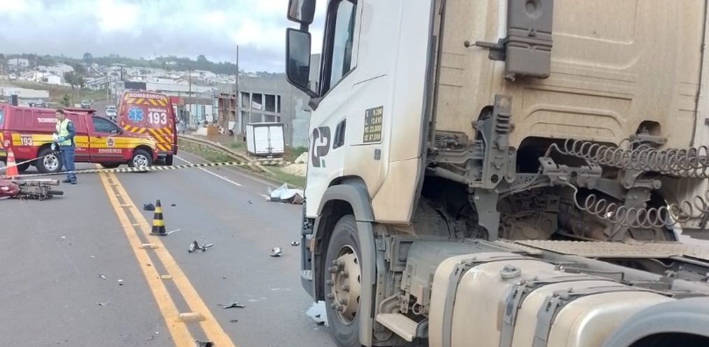 O condutor da moto de 21 anos estava deitado sobre a via já sem os sinais vitais. O motorista do caminhão de 38 anos não teve ferimentos.