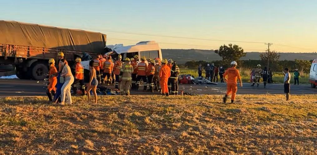 Um acidente entre um caminhão e uma van na BR-020, perto da divisa entre o Distrito Federal e Formosa (GO), deixou cinco mortos e 11 feridos, na madrugada desta terça-feira, 17.