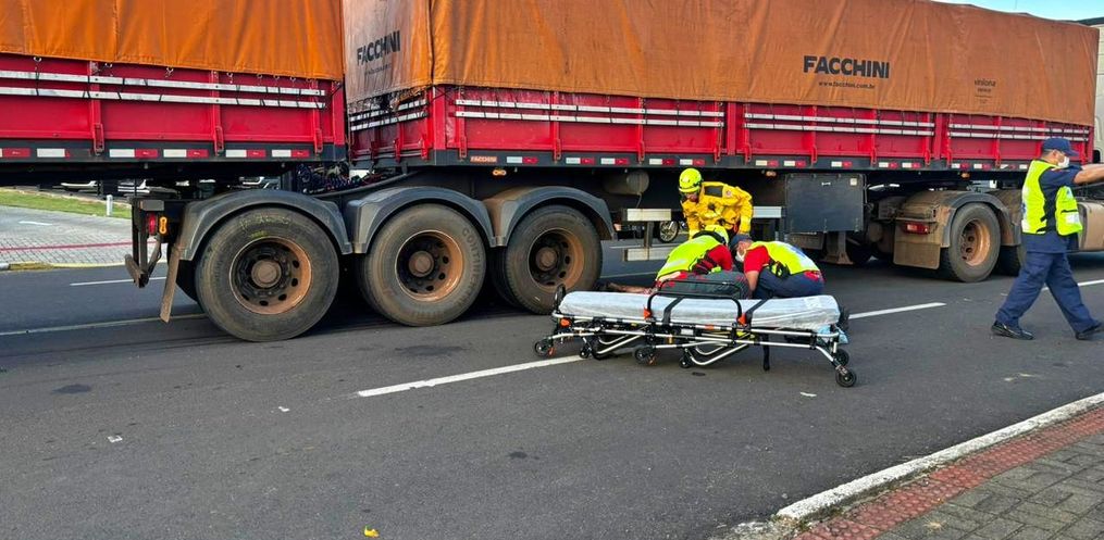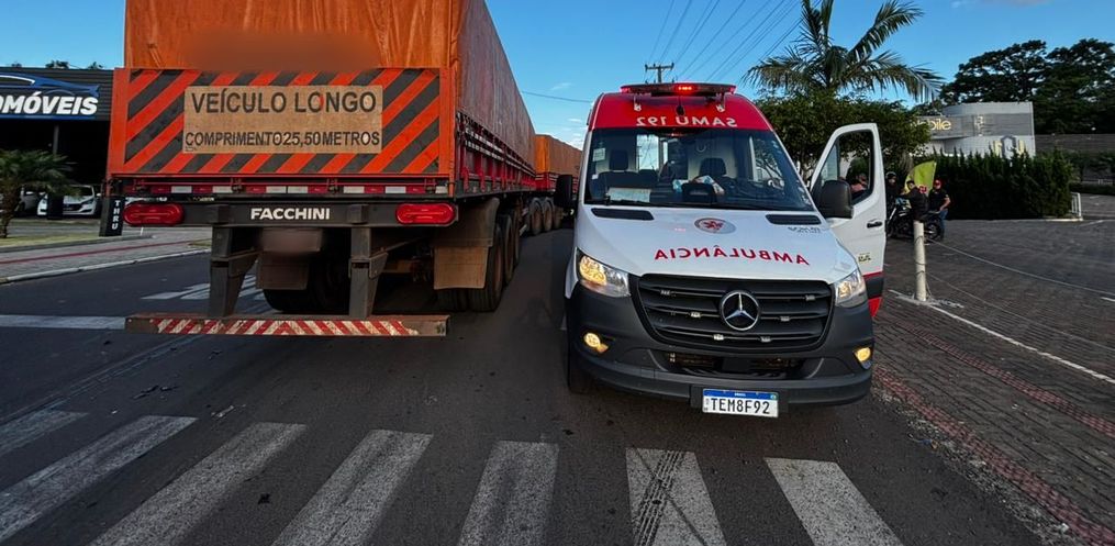 De acordo com informações apuradas pela reportagem, uma carreta bitrem trafegava pela Avenida Willy Barth quando sinalizou a direita que acessaria a via que leva ao bairro Andreatta. No momento da conversão, o caminhão acabou colidindo com uma motocicleta.