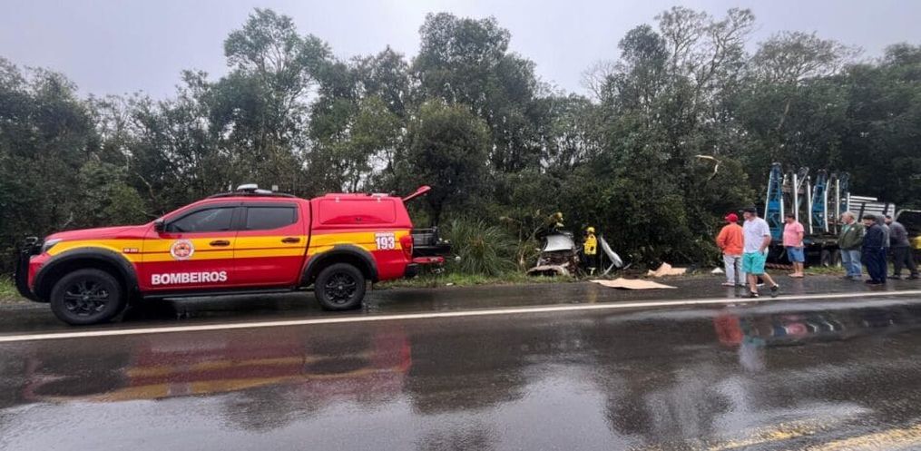Um acidente entre um carro e um caminhão matou três pessoas na BR-470, em São Cristóvão do Sul, na Serra de Santa Catarina. A colisão frontal ocorreu nesta sexta-feira, 20, pouco depois do meio-dia, e mobilizou equipes do Corpo de Bombeiros Militar e do Samu. Apesar dos esforços, os socorristas encontraram as vítimas já sem vida, presas às ferragens.