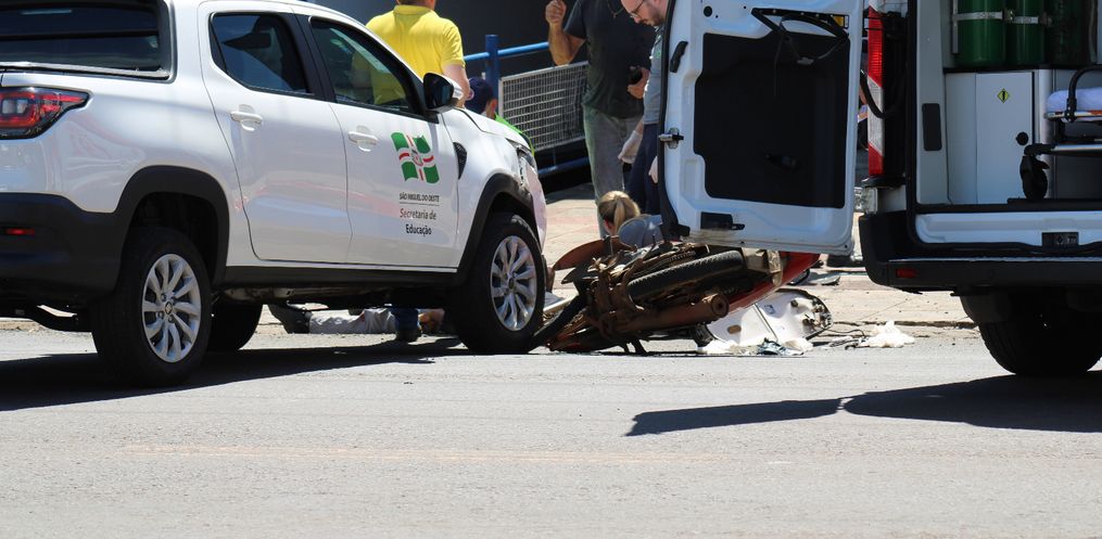 Um homem ficou ferido em um acidente envolvendo uma Honda Biz e um Fiat Strada da secretaria de Educação na Avenida Willy Barth na manhã desta segunda-feira, 3, por volta das 11h20, em São Miguel do Oeste.