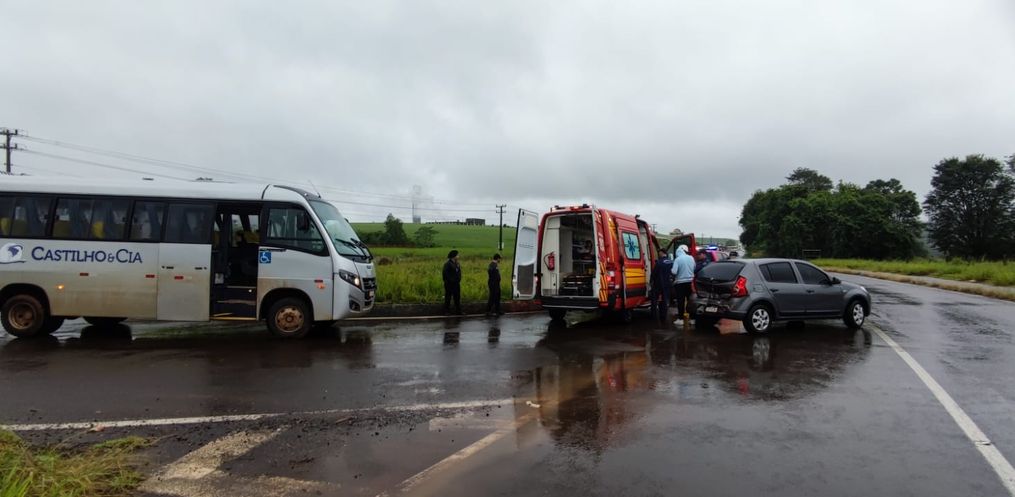 Foi uma colisão na rotatória, envolvendo um Sandero e um ônibus. O condutor e os passageiros do ônibus não sofreram ferimentos. No Sandero estava o motorista, o qual não se feriu e optou por não ser encaminhado ao hospital. Já a caroneira estava consciente dentro do veículo e sofreu uma contusão na cabeça, com alguns sinais de TCE leve, mas com sinais vitais preservados. A mulher foi encaminhada ao hospital.