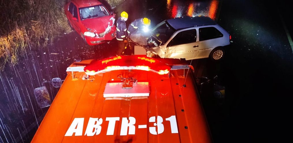 O Corpo de Bombeiros informou que o acidente envolveu um Fiat Siena, ocupado por duas pessoas que não se feriram e recusaram atendimento. O outro veículo envolvido é um VW Gol, ocupado apenas pelo motorista, de 34 anos, que estava preso dentro do veículo. Ele foi desencarceramento e encaminhado ao hospital com fratura nos arcos costais.
