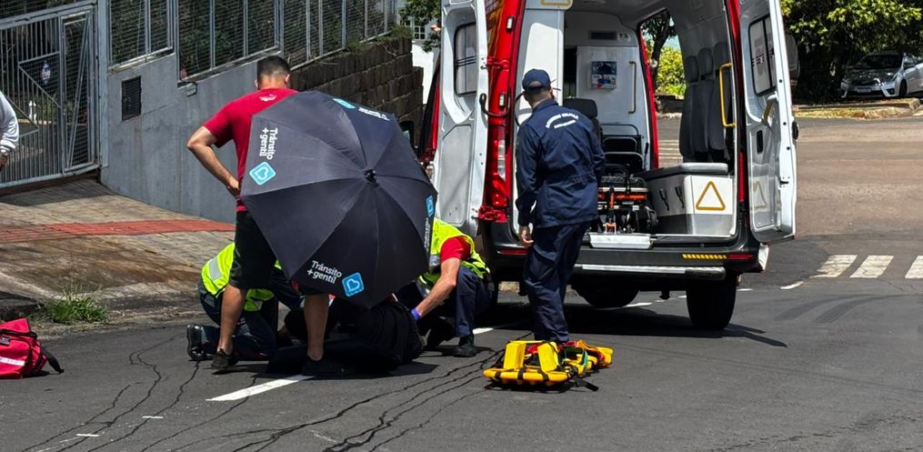 Dois homens ficaram feridos em uma colisão entre uma motocicleta Yamaha Crosser e uma caminhonete Mitsubishi L200 Triton, na manhã desta quinta-feira, 15, por volta das 11h30, na Rua Gastão Benetti, no centro de São Miguel do Oeste.