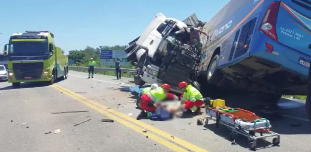 Um acidente entre um ônibus e um caminhão matou ao menos seis pessoas no Rio Grande do Sul. A colisão ocorreu por volta das 11h20min desta sexta-feira, 2, na BR-116, em Pelotas. Passadas três horas, equipes de socorro e da polícia ainda estavam no local e a rodovia estava bloqueada nos dois sentidos.