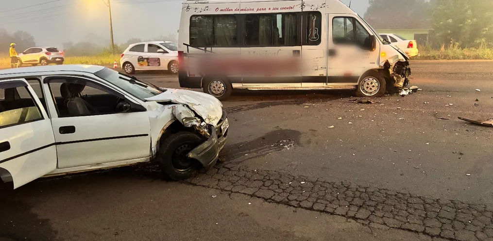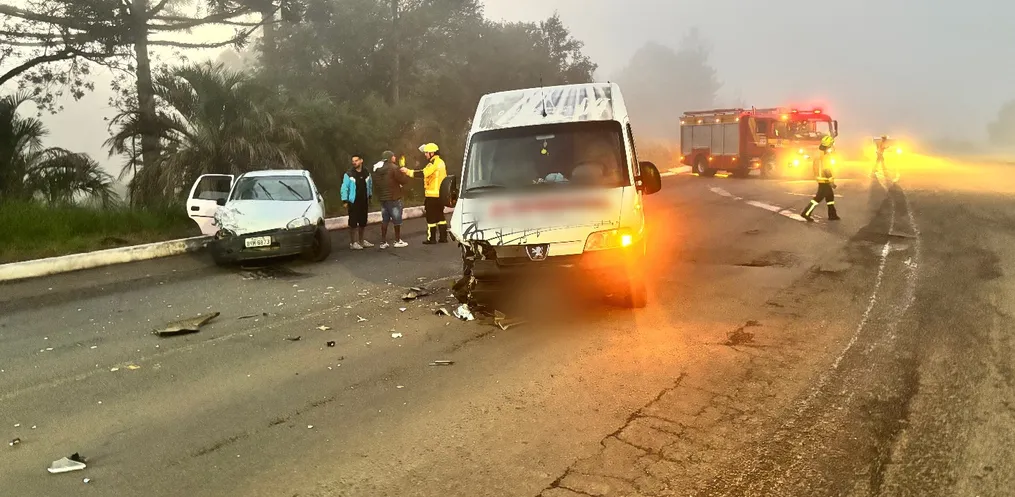 O acidente envolveu um GM Corsa, com placas de Dionísio Cerqueira, e uma van Peugeot Boxer