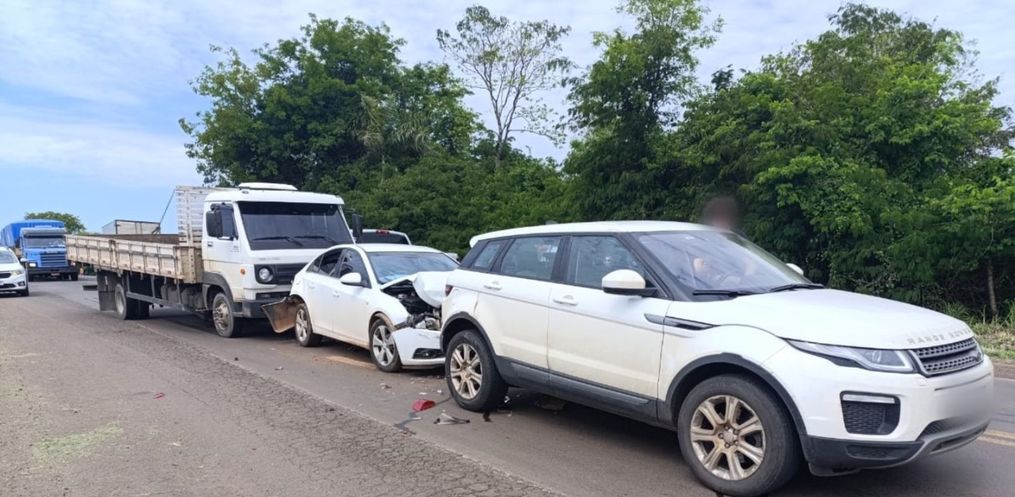 De acordo com informações apuradas pela Peperi, a ocorrência envolveu uma Range Rover, um GM Cruze e um caminhão de pequeno porte. A colisão foi traseira.