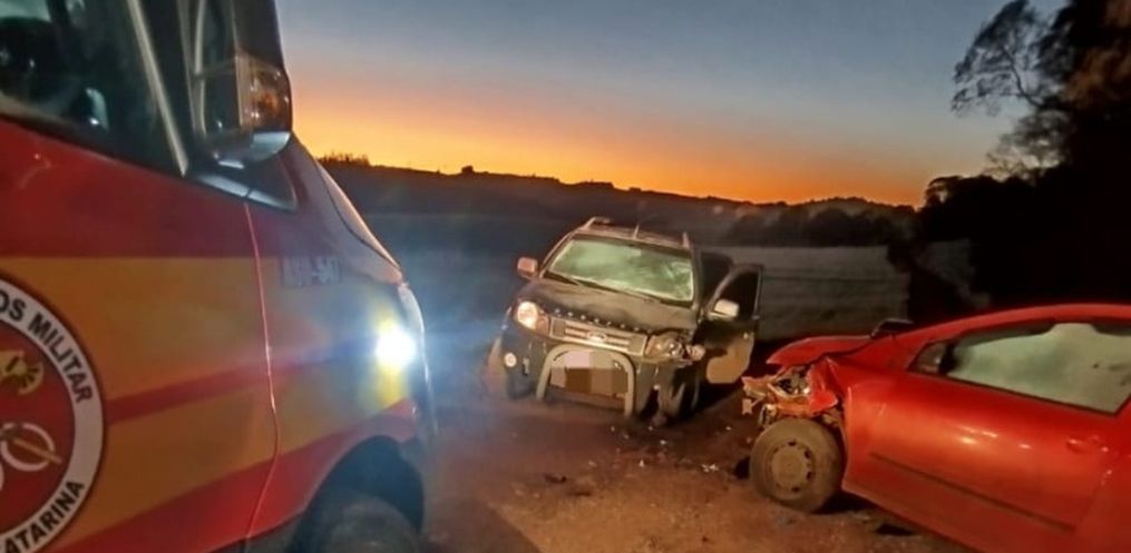 Duas pessoas ficaram feridas em uma colisão frontal entre dois carros na manhã desta quarta-feira, 24, por volta das 6h30, na Linha Guaraipo, interior de Maravilha.