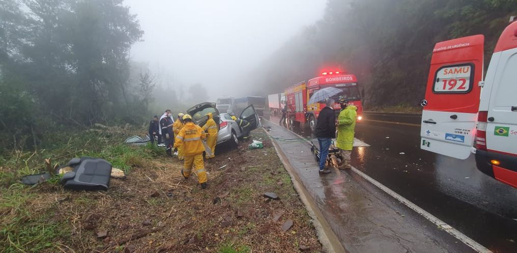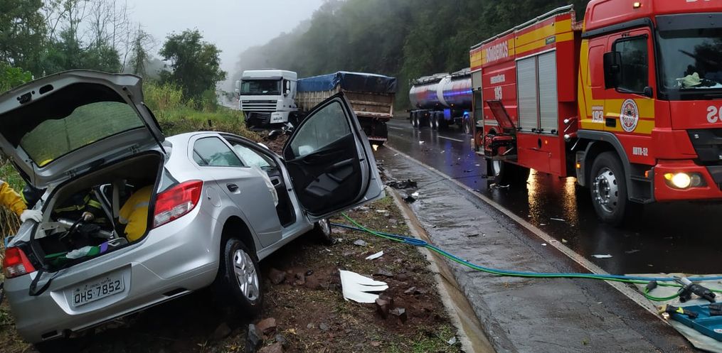 Uma pessoa sofreu ferimentos graves em um acidente na manhã desta quinta-feira, dia 25, na BR-282. A colisão foi entre um automóvel e um caminhão, segundo informou o Corpo de Bombeiros, em um trecho no município de Cordilheira Alta.