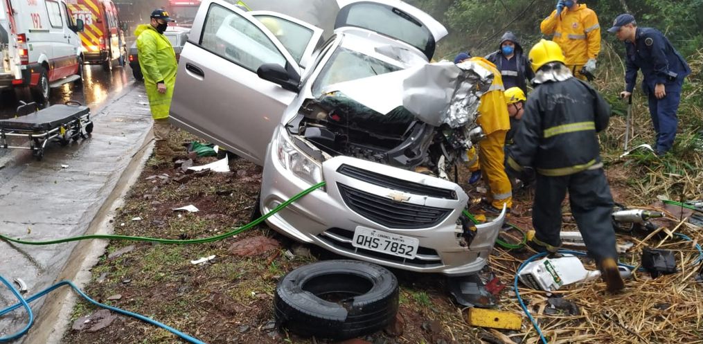 Os socorristas atenderam o motorista do Onix, com placas de Coronel Martins, que ficou preso nas ferragens. De acordo com a equipe, o homem de 43 anos apresentava fraturas nas pernas e suspeita de fratura no braço. Ele foi resgatado consciente e encaminhado ao hospital.