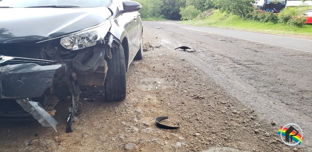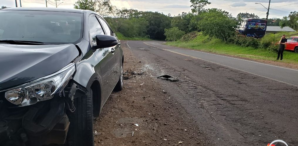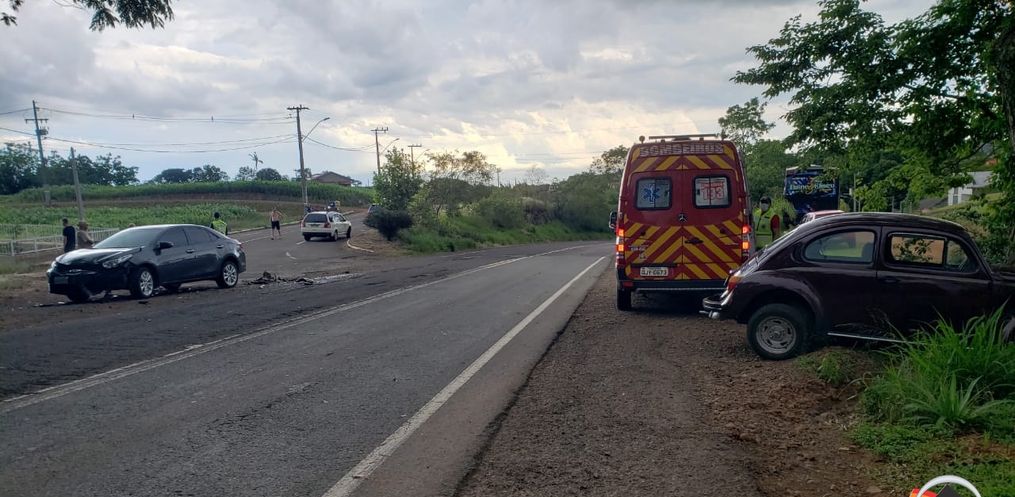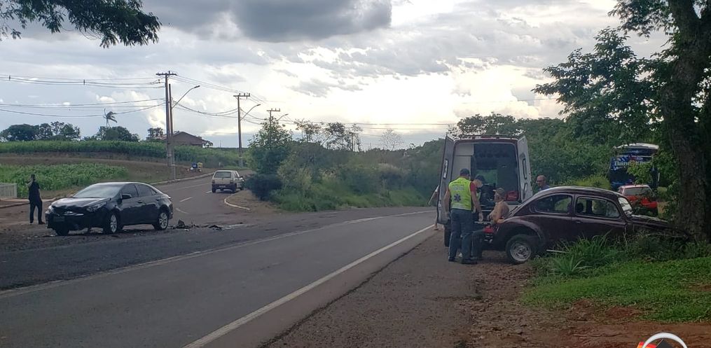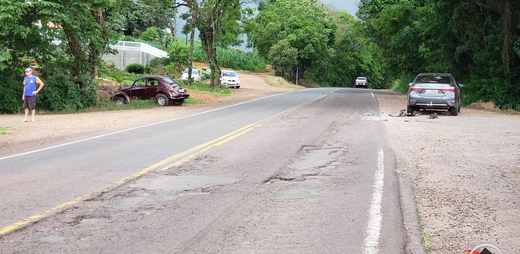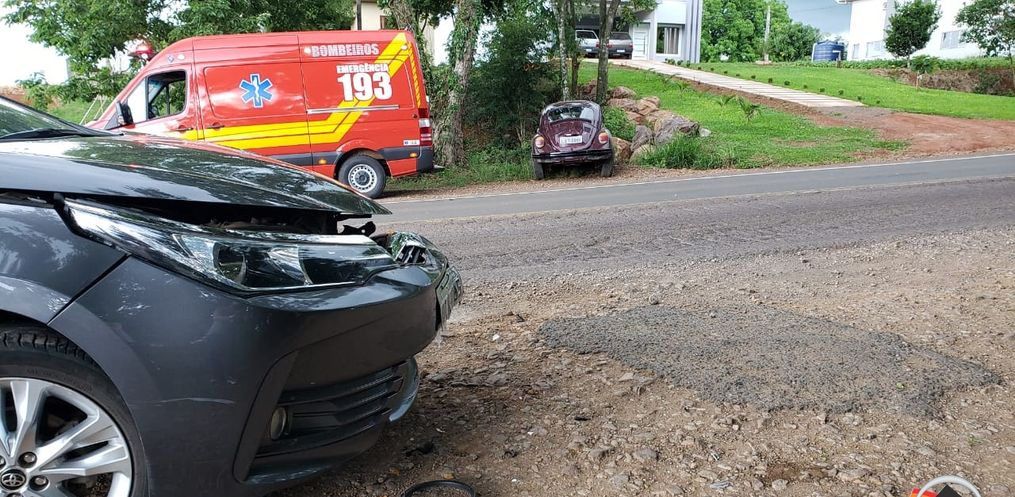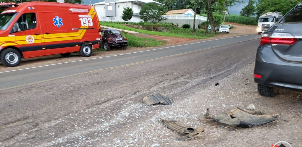 Colisão envolvendo Fusca emplacado em São João do Oeste e Corolla com placas de Itapiranga ocorreu por volta das 15h desta sexta-feira, 29. Foi no trecho da rodovia em Linha Cristo Rei, interior de São João do Oeste.