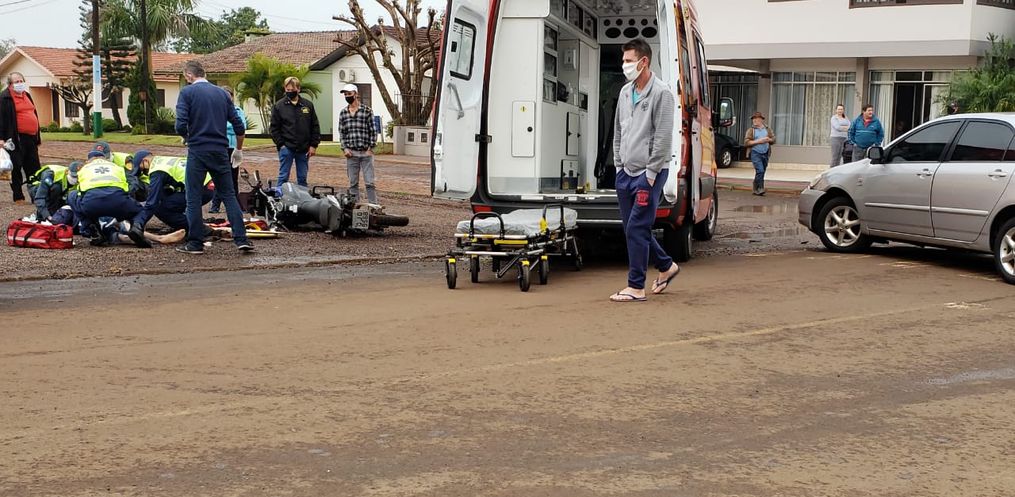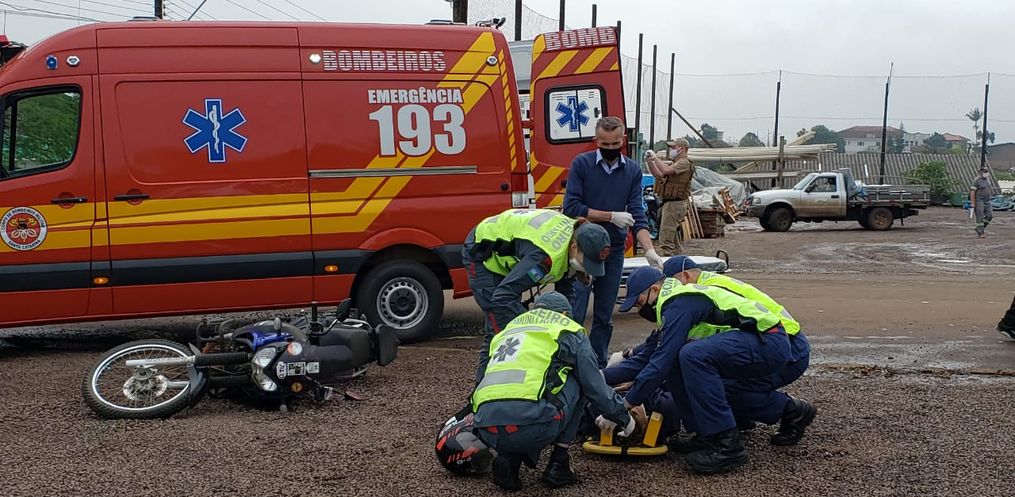 Os bombeiros de Iporã do Oeste atenderam o motociclista, que teve ferimentos na perna esquerda, com suspeita de fratura. Após atendimento dos socorristas, o rapaz foi conduzido ao hospital.