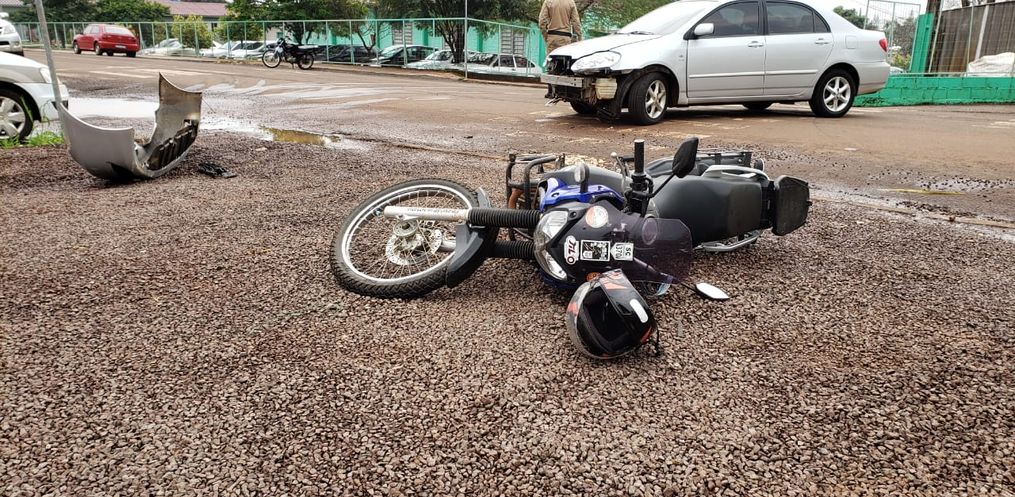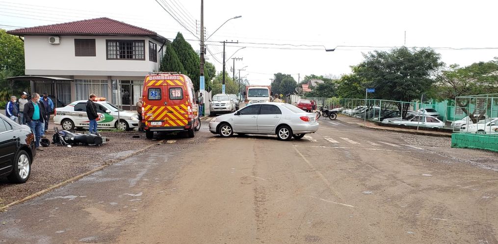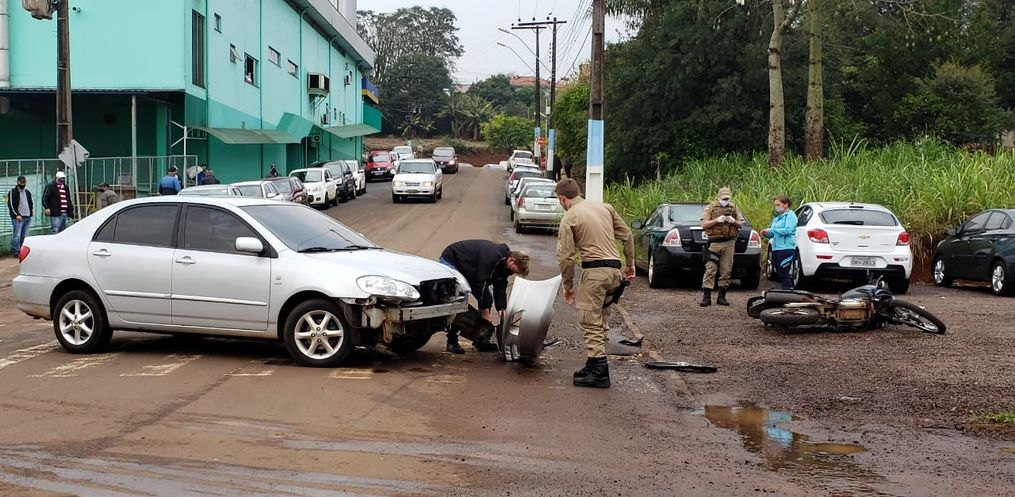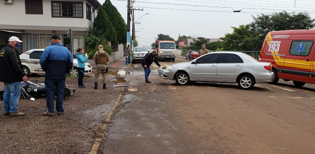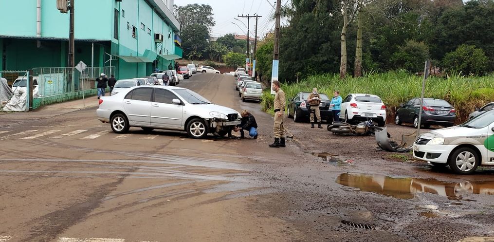 A colisão frontal envolveu um Corolla, com placa de Iporã do Oeste, conduzido por uma mulher de 38 anos, e uma moto Tenere, de São João do Oeste, pilotada por um rapaz, de 23 anos.