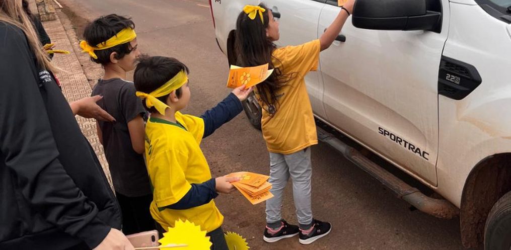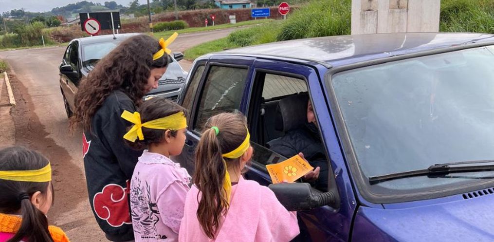 Também foi realizado um pedágio de conscientização com entrega dos materiais sobre a importância da temática, buscando sensibilizar e convidar a população em geral, para contribuir com os cuidados e a proteção das crianças e adolescentes.