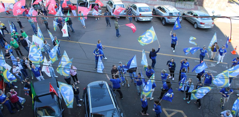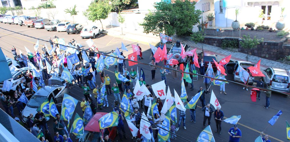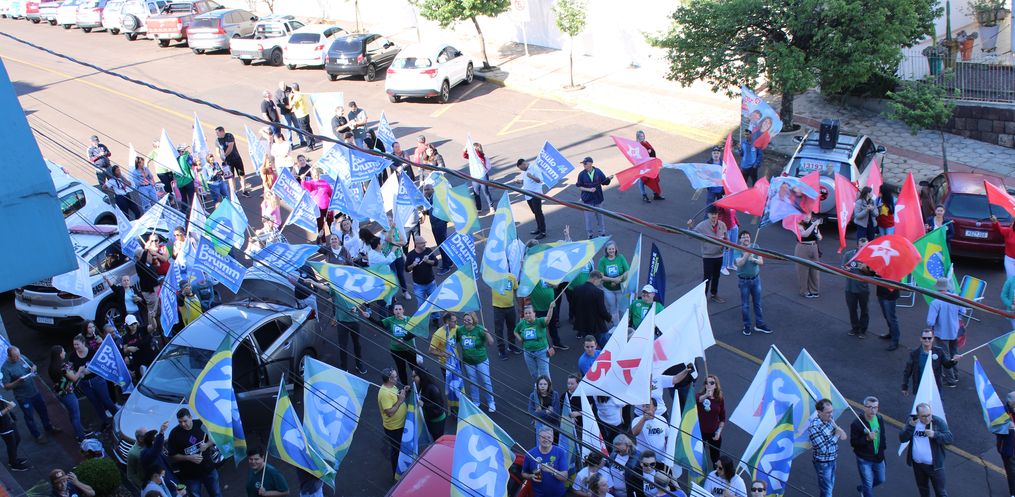 O debate deste sábado reuniu um grande número de simpatizantes dos candidatos Paulo Drumm, Juares Da Silva e Edenilson Zanardi em frente ao prédio da Rede Peperi.