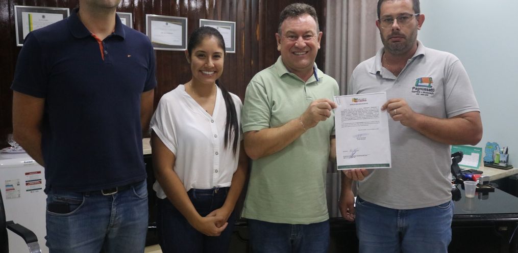 O Prefeito João Luiz de Andrade recebeu na manhã desta quinta-feira, 11, em seu gabinete o representante da empresa Pagnussatti Engenharia e Incorporação LTDA, para realizar a assinatura e entrega da ordem de serviço para execução das Obras de Pavimentação com Pedras Irregulares (calçamento) de mais 4 trechos da área urbana do Município.