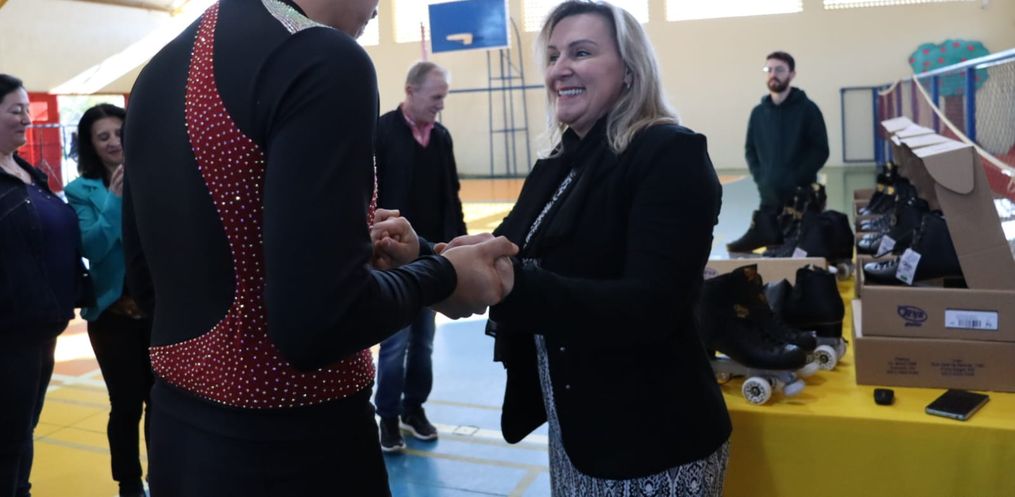 Rozangela Moccelini secretária de educação de Campo Erê destaca que para a compra de 30 patins foram investidos R$ 24 800,00. São materiais de alta qualidade e profissionais, garantindo mais segurança e equilíbrio aos participantes.