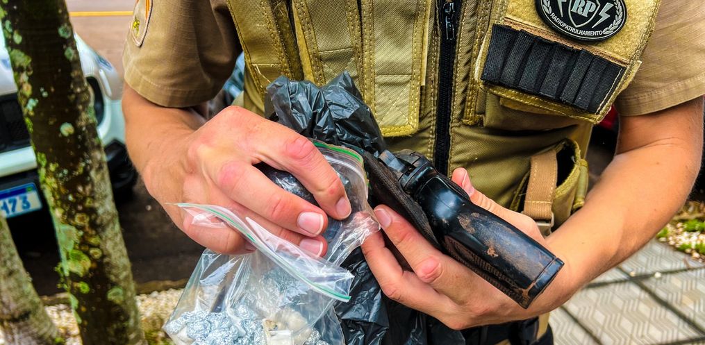 Diante disso, os militares entraram no local e localizaram drogas e um simulacro. O jovem sem perceber que a guarnição voltou ao local e no momento em que buscava a droga foi detido.