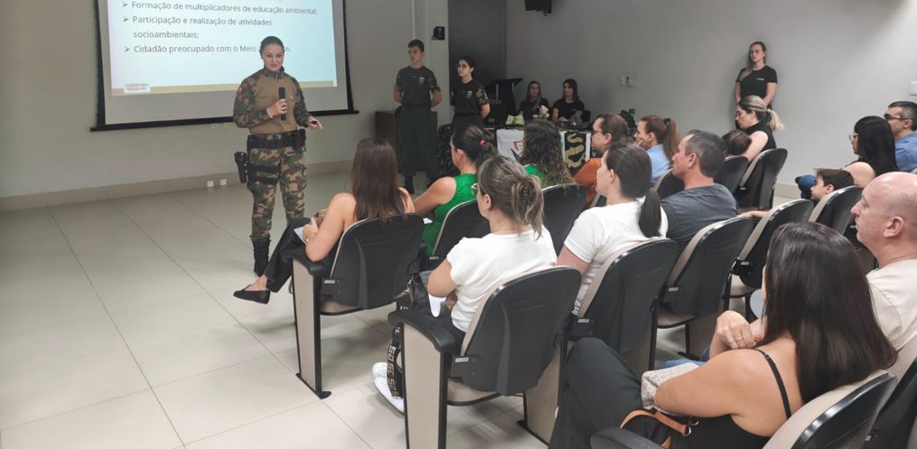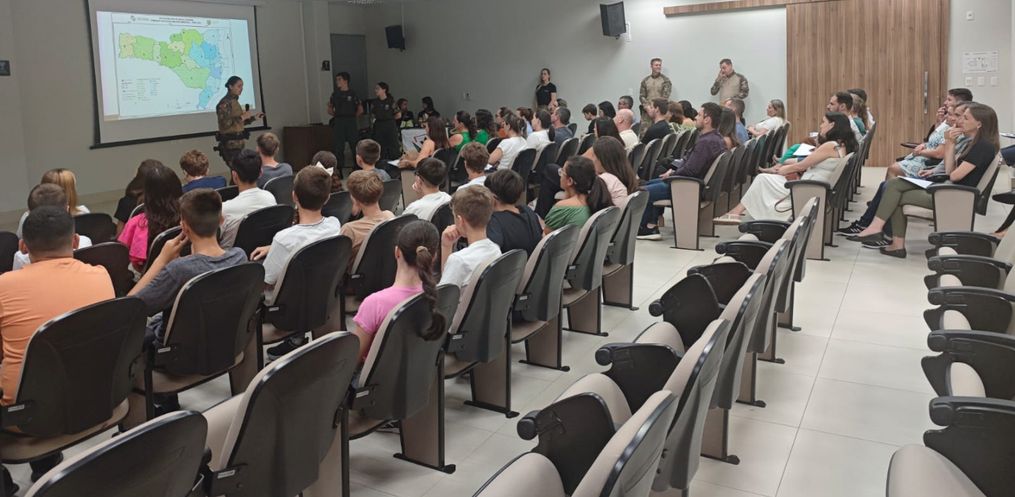Cerca de 100 pessoas participaram na noite desta quarta-feira, 26, da aula inaugural do Programa Protetores Ambientais (PROA) em São Miguel do Oeste. O encontro aconteceu no auditório do SICOOB e marcou o início das atividades da 29ª turma do projeto, promovido pelo 2º Pelotão da 1ª Companhia do 2º Batalhão da Polícia Militar Ambiental (PMA).