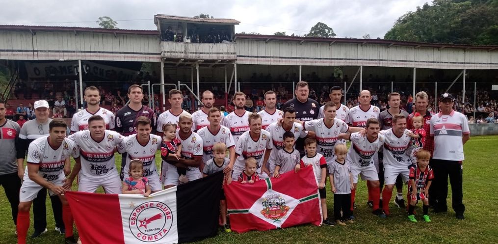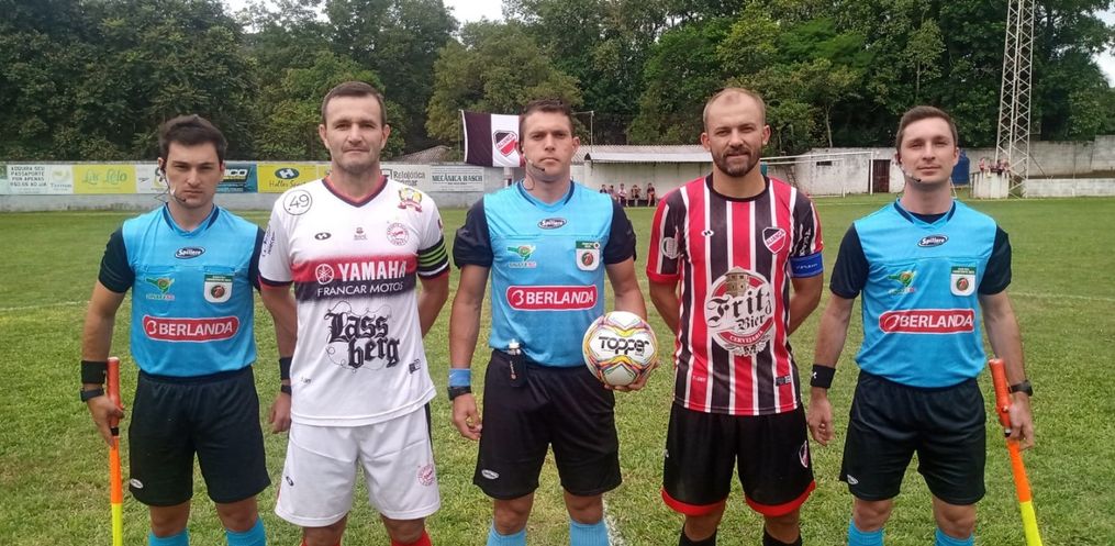 O placar do primeiro tempo foi aberto com gol de cabeça de Edi do Cometa em uma cobrança de falta de Thiaguinho Butske.