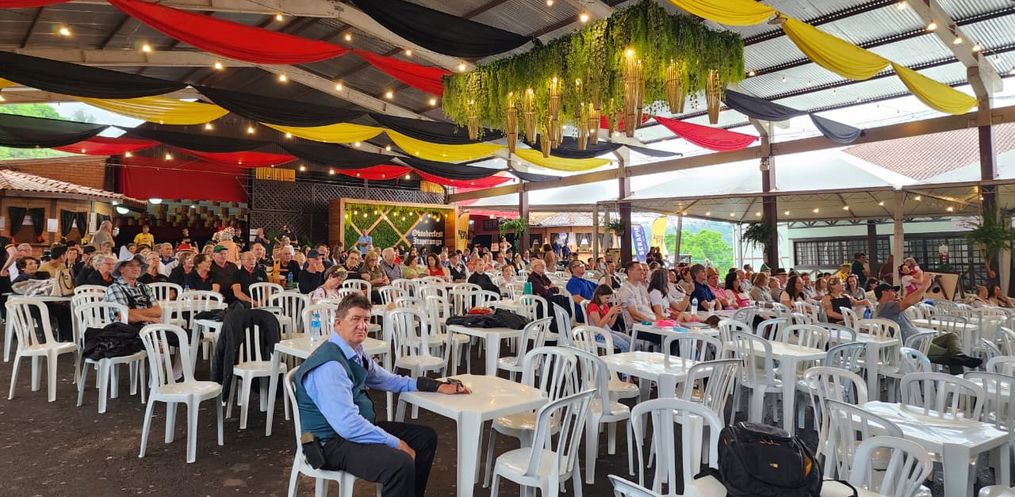 O encerramento da 46ª Oktoberfest ocorre no próximo domingo, 19, em linha Presidente Becker. A partir das 9h ocorre missa com corais. Na sequência, apresentação dos corais. Às 11h, música ao vivo com Carine e Felipe. Após o almoço típico, ocorrem apresentações culturais, jogos germânicos, torneios e café típico. A partir das 17h, o trio Gelson, Ivan e Airton encerra a 46ª edição da festa maior com baile.
