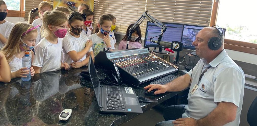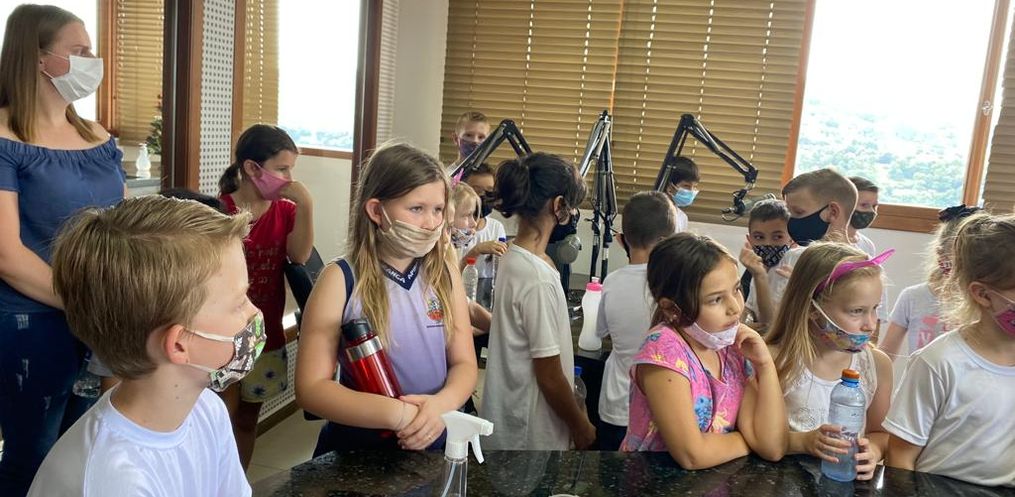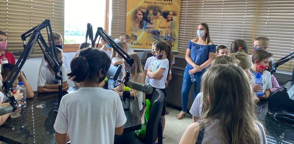 Acompanhados pela professora Arlinde Wendling e estagiários, os alunos puderam interagir ao vivo durante a programação, onde também conheceram o funcionamento de toda a emissora.