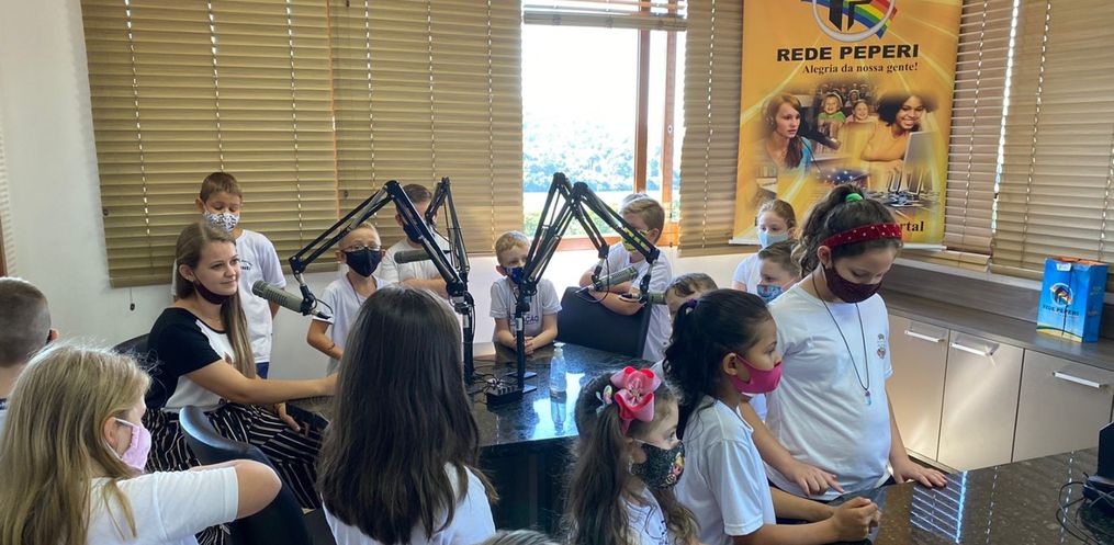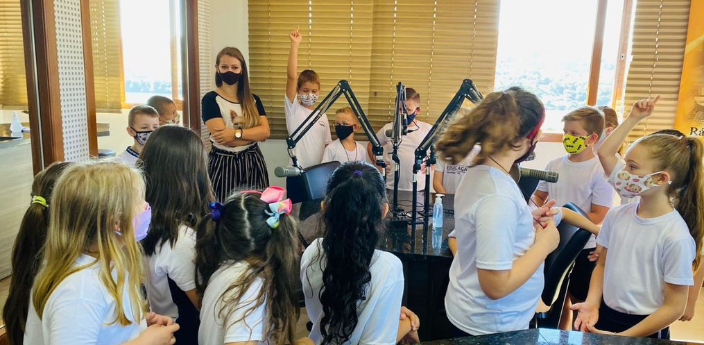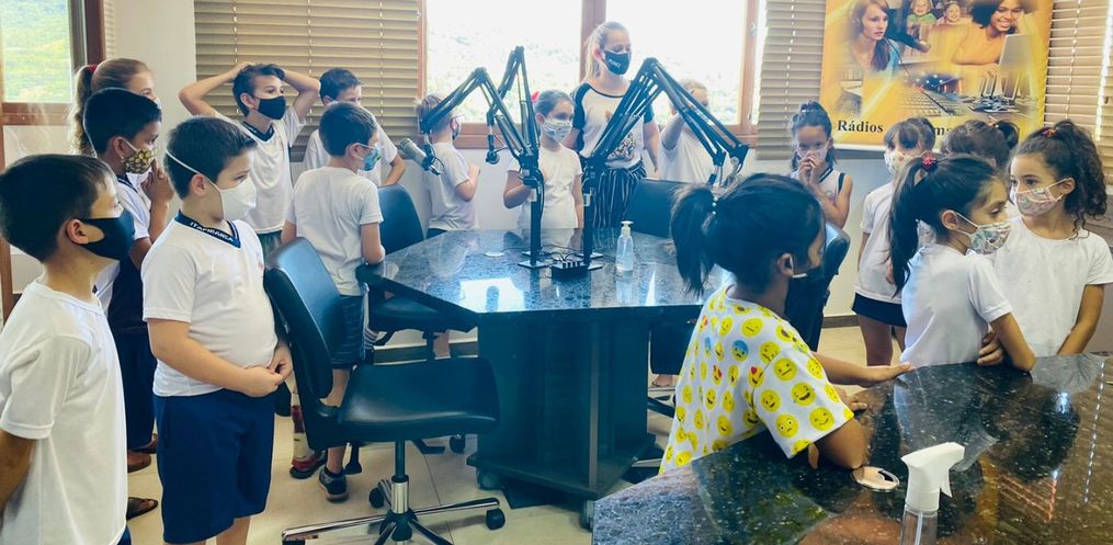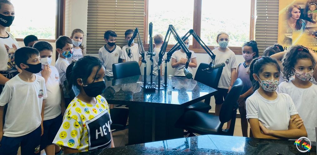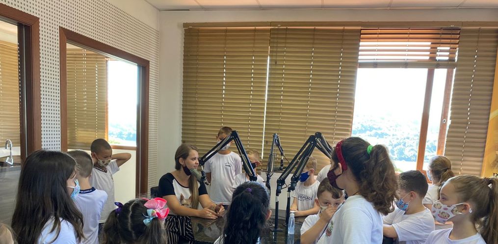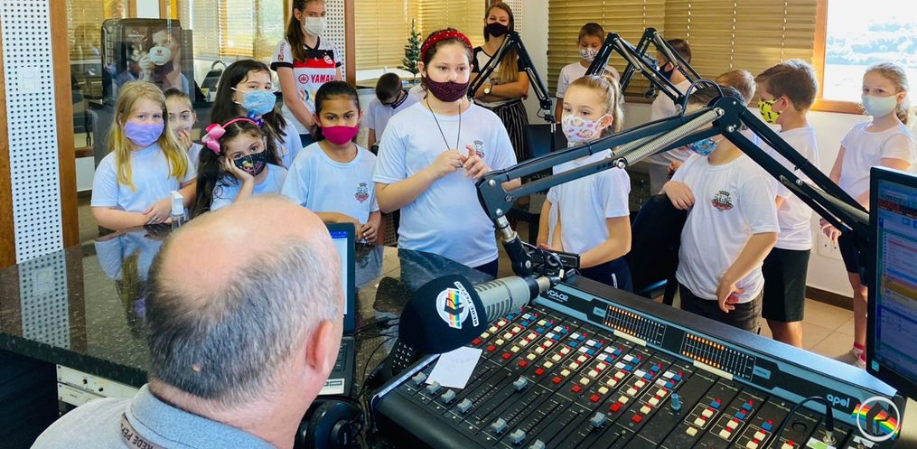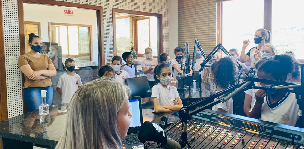 Acompanhados pela professora Joice Schlickmann e estagiária, os alunos que estudam no turno da manhã e da tarde puderam conhecer de perto o funcionamento de toda a emissora. As crianças puderam interagir e fazer perguntas aos locutores.