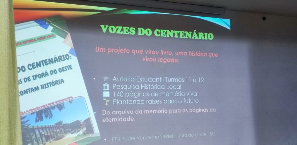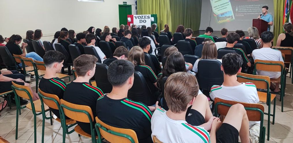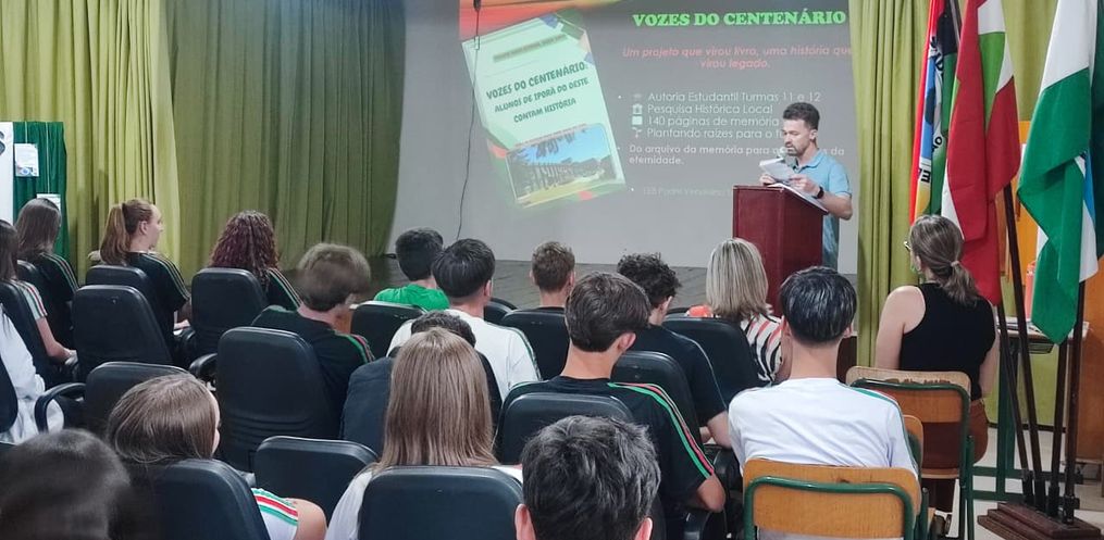 A Escola Estadual Padre Vendelino Seidel, de Iporã do Oeste, lançou nesta semana o livro Vozes do Centenário. A obra foi produzida pelos alunos do primeiro ano do ensino médio, dentro do projeto “Nossa História, Nossa Vida”, coordenado pelo professor de Geografia, Augustinho Petry.