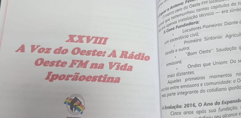 Após essa etapa, cada estudante escolheu um tema considerado importante para registrar no livro. Os capítulos trazem histórias de entidades, grupos culturais e personagens que marcaram Iporã do Oeste. Entre os destaques estão o CTG, a patinação Asa da Liberdade, a história da agricultura, o papel das mulheres na colonização, o Hospital, a FAIC, as princesas do município e até a trajetória da Rádio Oeste. Com um capítulo inteiro dedicado à Rádio Oeste, os alunos fizeram um resgate da importância da emissora em dar voz ao oeste conectando o que a geografia, muitas vezes, separa demonstrando que o compromisso com a comunidade permanece inalterado desde a sua primeira transmissão.