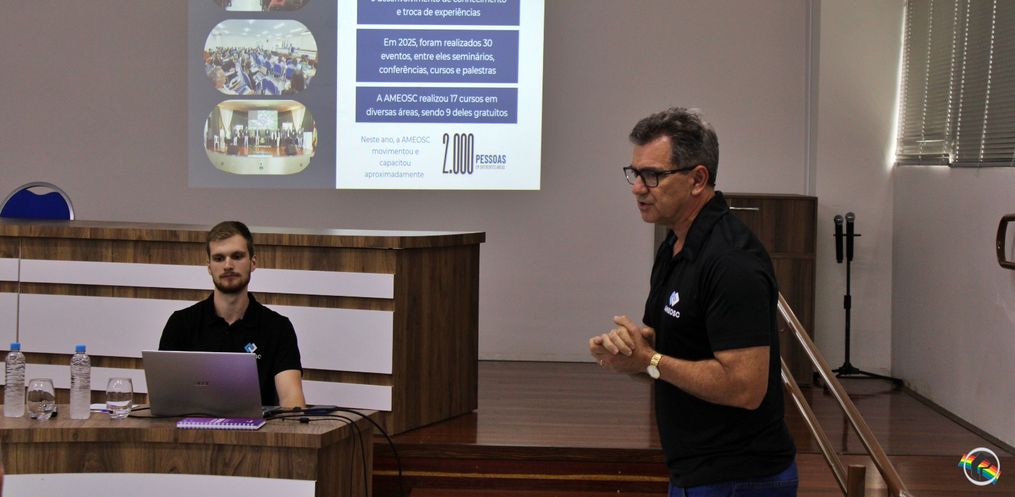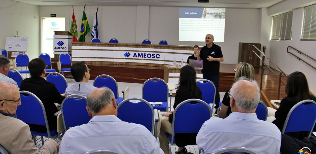 Por volta das 17h45, foi apresentada a resolução que estima a receita e fixa as despesas da Ameosc para o exercício de 2026. Na sequência, às 18h, os gestores municipais participaram da eleição da nova diretoria da entidade para o período de 2026.