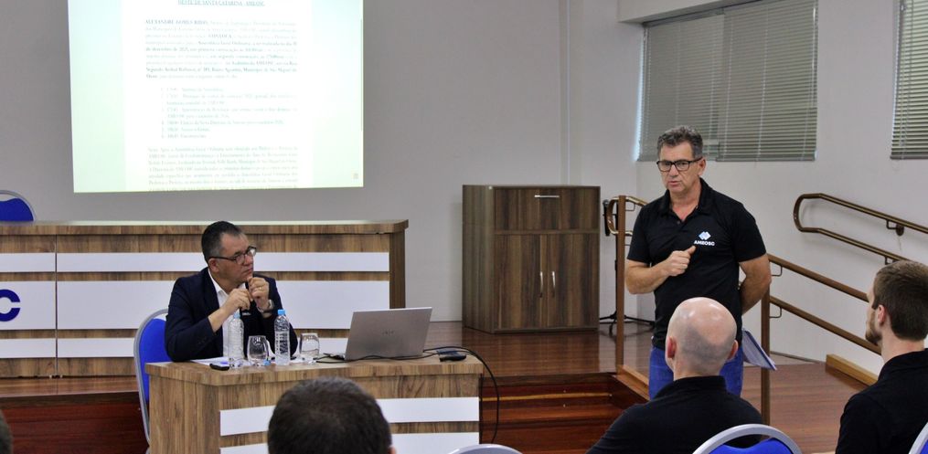 A Assembleia Geral Ordinária da Associação dos Municípios do Extremo Oeste de Santa Catarina (Ameosc) foi realizada nesta quarta-feira, 10, no auditório da entidade, em São Miguel do Oeste. O encontro, convocado pelo presidente da Ameosc e prefeito de Itapiranga, Alexandre Ribas, reuniu prefeitos e prefeitas dos municípios associados para deliberar sobre pautas administrativas e financeiras.