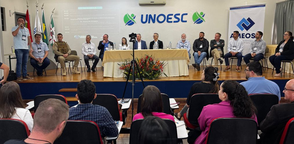 A Associação dos Municípios do Extremo Oeste de Santa Catarina (AMEOSC) promove nesta sexta-feira, 14, o Seminário de Desenvolvimento Regional. O evento, sediado na Unoesc, reunirá líderes regionais, especialistas e profissionais de diversas áreas para discutir estratégias e soluções inovadoras voltadas ao desenvolvimento sustentável e inclusivo da região.